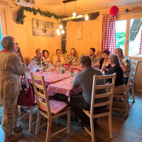 SPD-Vorsitzender Johannes Ambros freute sich, dass sich bei traumhaft schönem Herbstwetter über 20 Interessierte aufmachten, den Freudenberger Märchenweg zu erkunden. www.freudenberger-maerchenweg.de/. Mit launigen Worten gelang es Uli Piehler, Vorsitzender des Freudenberger Heimat- und Kulturvereins, Jung und Alt in das Reich der Schönwerth-Märchen zu entführen. Nach der 1 ½ stündigen Führung, verbunden mit tollen Ausblicken erwartete die Teilnehmer bei herrlichem Sonnenschein im Naturhof Landfreunde www.cafe-oma-gerti.de schmackhafte Brotzeiten und verführerische Torten. Auch Landtagskandidat Uwe Bergmann ließ es sich nicht nehmen, den Wanderern einen Besuch abzustatten.